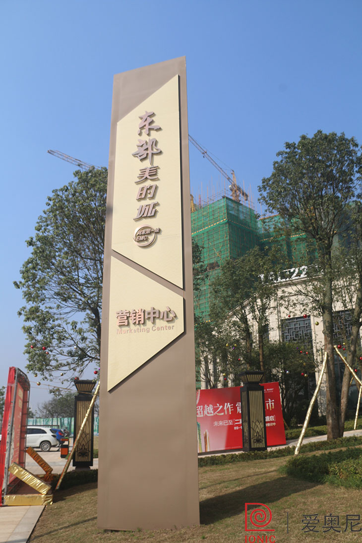 東部·美的城項目精神堡壘由愛奧尼標識設計公司精心制作,不管是設計風格還是精神堡壘上面的內容都賦予了豐富的文化內涵,集中體現了整個項目的精神,是一種很特別的獨立廣告代言形式,使精神堡壘在整個標識系統(tǒng)中起著不可替代的作用。