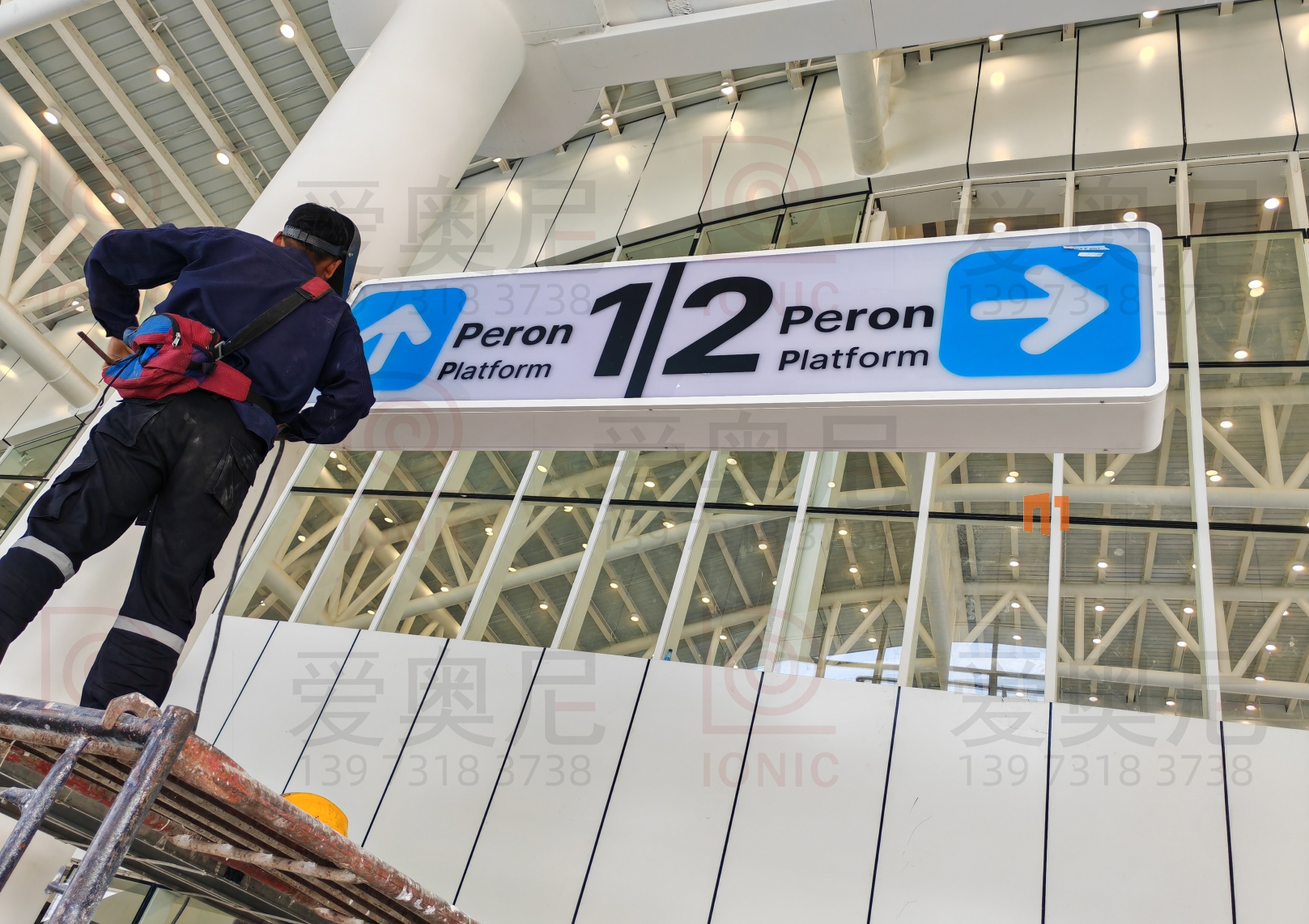 下圖是愛奧尼標(biāo)識公司為印尼雅萬高鐵帕達(dá)拉郎站制作和安裝指導(dǎo)服務(wù)的靜態(tài)標(biāo)識??蛻魧?xiàng)目制作工藝非常滿意。湖南愛奧尼標(biāo)識工程有限公司是一家專業(yè)的鐵路標(biāo)識,導(dǎo)向標(biāo)識,高鐵站標(biāo)識,站房標(biāo)識,靜態(tài)標(biāo)識設(shè)計制作安裝服務(wù)公司,擁有15年標(biāo)識設(shè)計經(jīng)驗(yàn),100多名專業(yè)生產(chǎn)團(tuán)隊(duì),獲得ISO9001質(zhì)量管理體系認(rèn)證等數(shù)10項(xiàng)榮譽(yù)資質(zhì)證書,電話:400-0731-050,13973183738