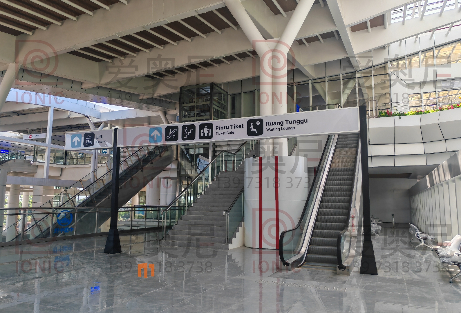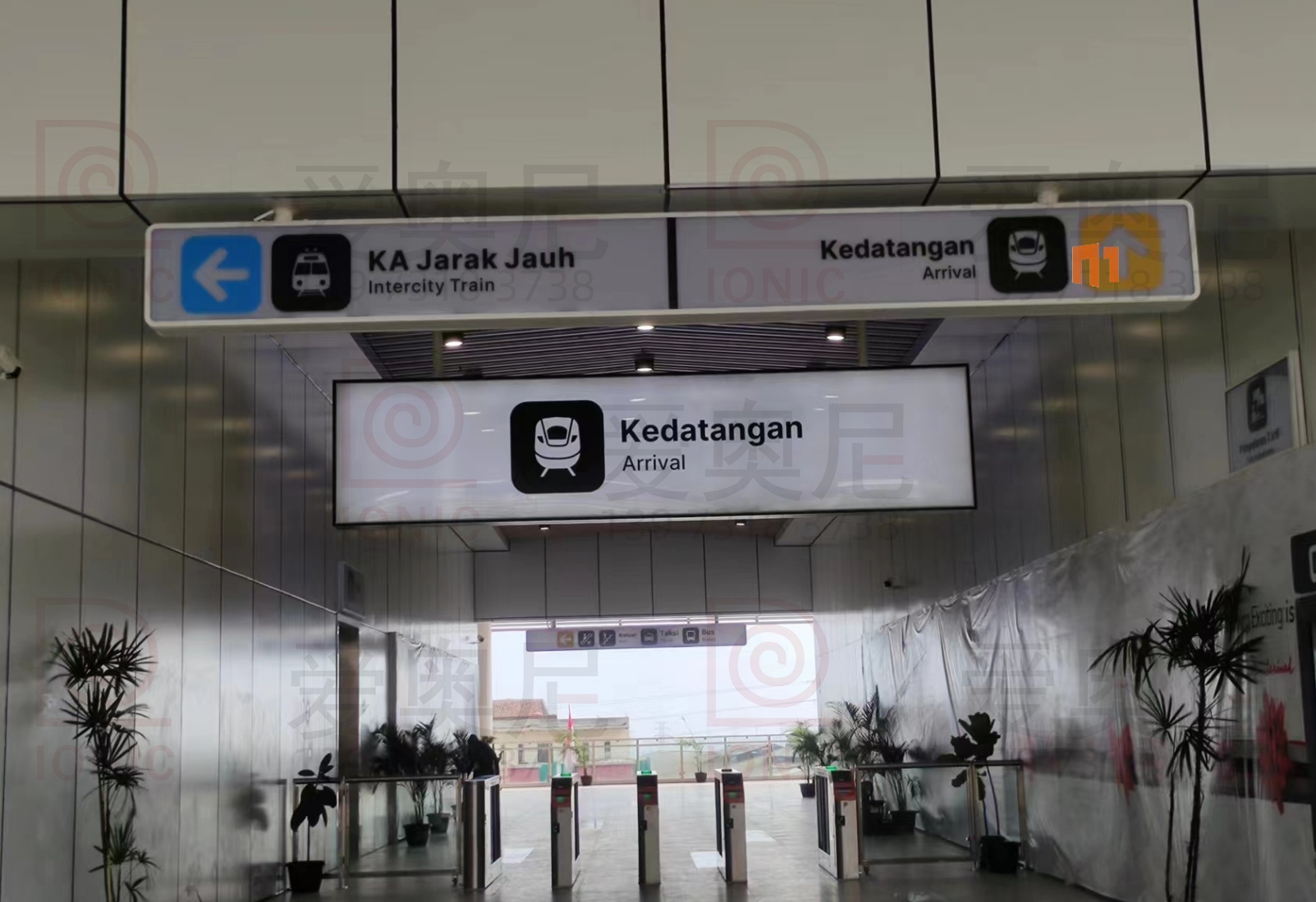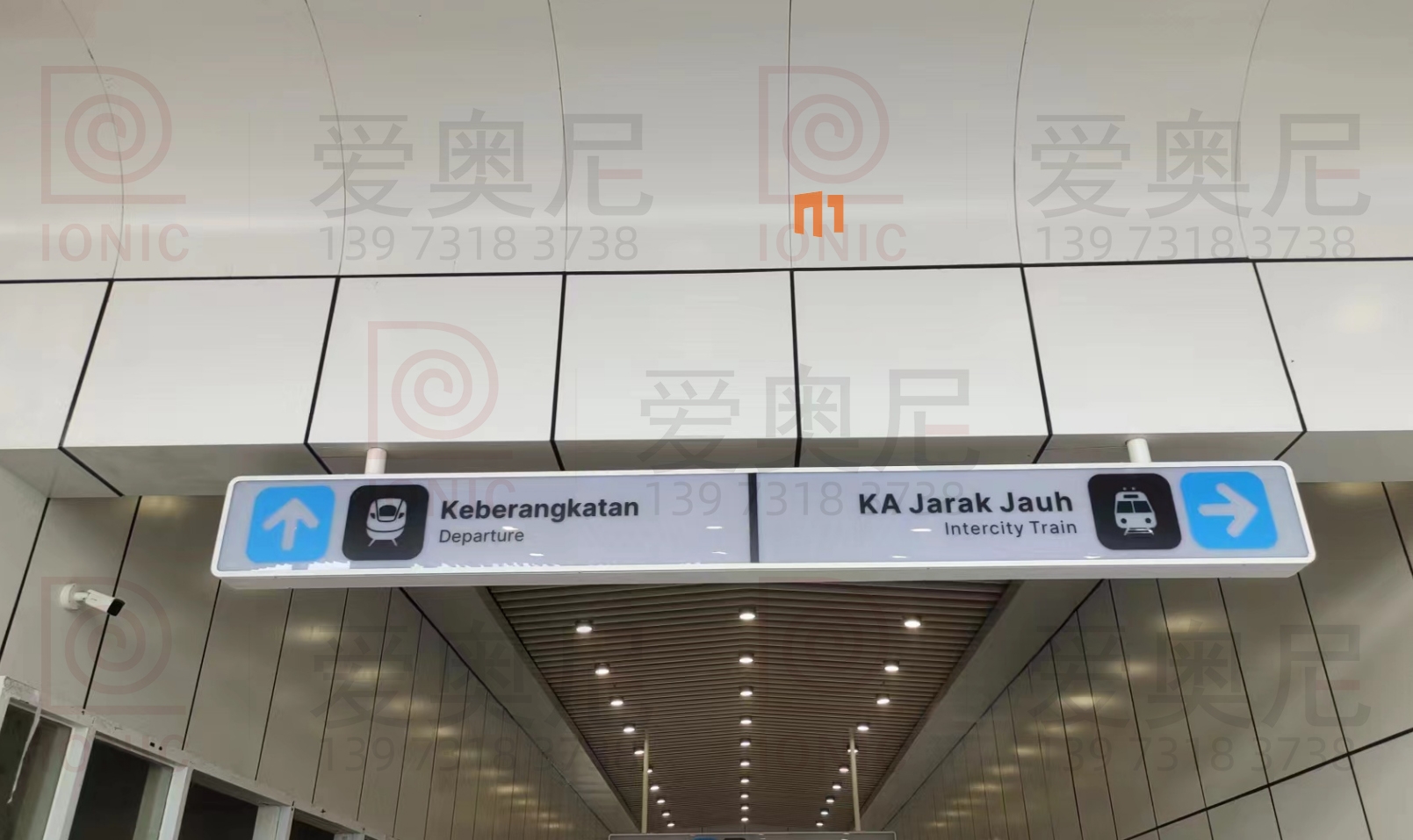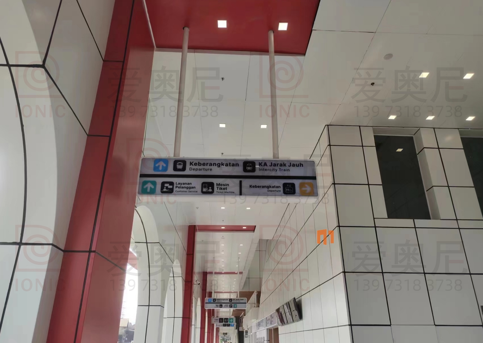 雅萬高鐵是中國共建“一帶一路”倡議和印尼“全球海洋支點(diǎn)”構(gòu)想對接、中印尼兩國務(wù)實(shí)合作的旗艦項(xiàng)目,全線采用中國技術(shù)、中國標(biāo)準(zhǔn),也是印尼和東南亞第一條高速鐵路。雅萬高鐵連接印尼首都雅加達(dá)和旅游名城萬隆,線路全長142.3公里,最高運(yùn)行時速350公里,始自雅加達(dá)市,途經(jīng)勿加泗市、勿加泗縣、卡拉旺縣、普旺加達(dá)縣、西萬隆縣、芝馬墟市、萬隆縣,終至萬隆市,設(shè)有哈利姆、卡拉旺、帕達(dá)拉朗、德卡魯爾4座車站。愛奧尼助力中鐵三局為帕達(dá)拉郎站提供站內(nèi)所有靜態(tài)標(biāo)識的生產(chǎn)和安裝指導(dǎo)服務(wù)。